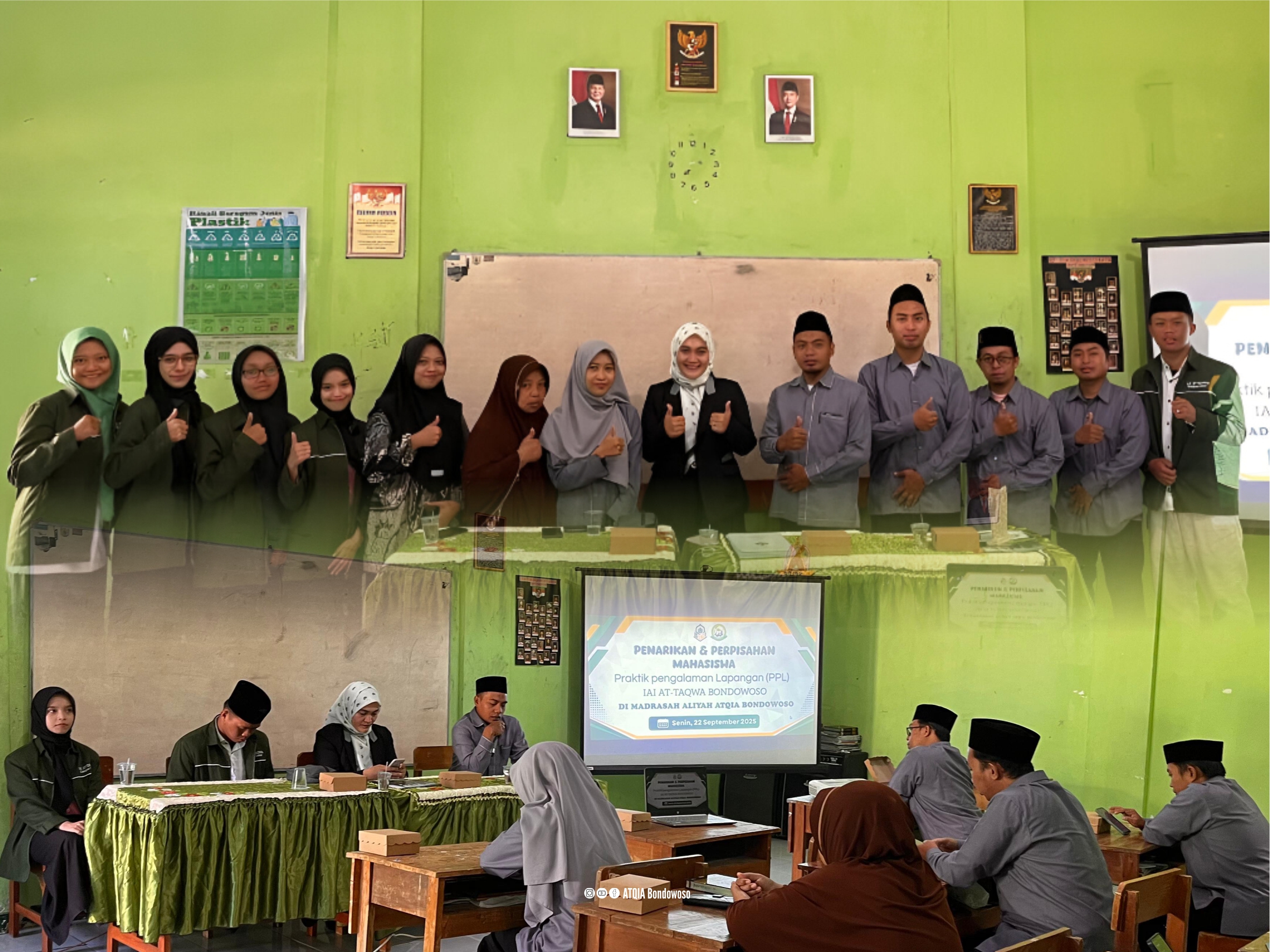 Setelah menjalani masa Praktik Pengalaman Lapangan (PPL) selama kurang lebih dua bulan, MA Atqia Bondowoso secara resmi melepas mahasiswa dari Institut Agama Islam At-Taqwa pada hari Senin, 22 September 2025. Acara pelepasan ini berlangsung hangat dan khidmat di aula madrasah, dihadiri oleh kepala madrasah, guru pembimbing, staf TU, dan seluruh mahasiswa PPL.